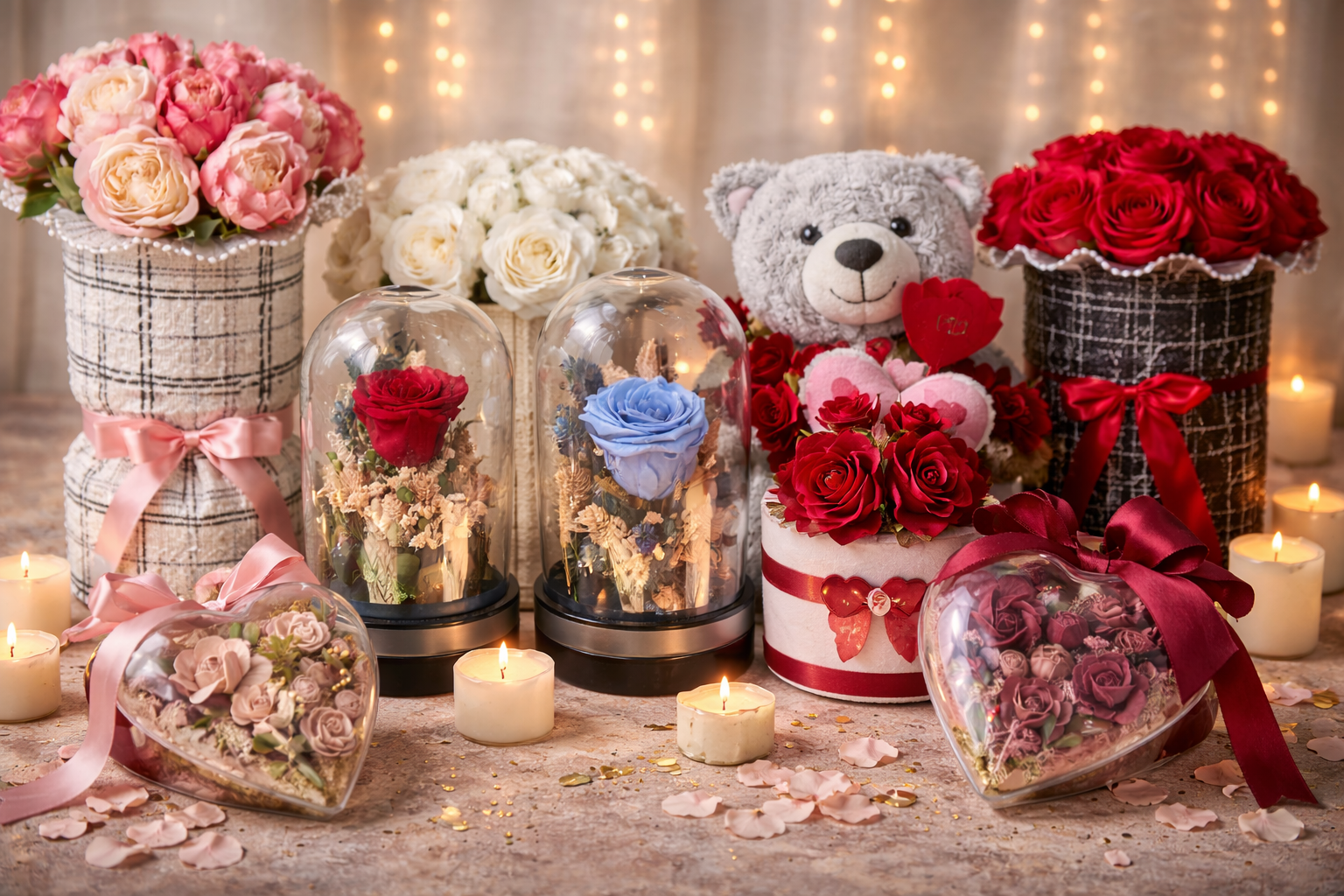 Подарете емоция, която остава – изискани цветни аранжировки, вечни рози и романтични подаръци, създадени да говорят вместо вас. Нека този Свети Валентин бъде запомнен с жест, който докосва сърцето.