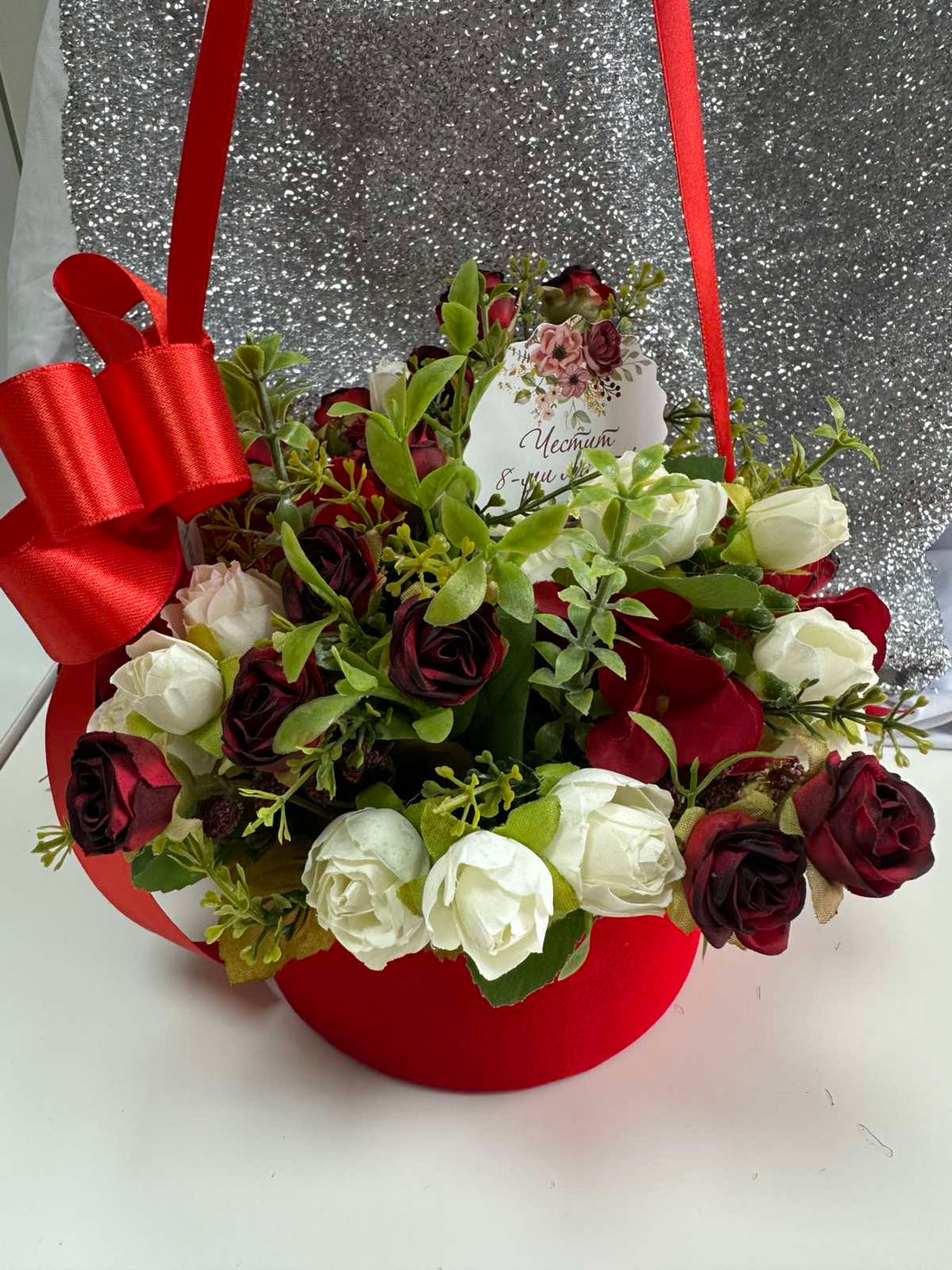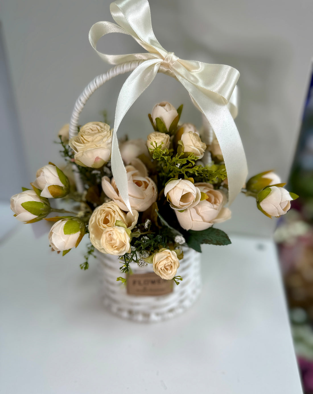 Деликатна кошничка с великолепни цветя! Макар и изкуствени, те се отличават с високо качество, красиви...