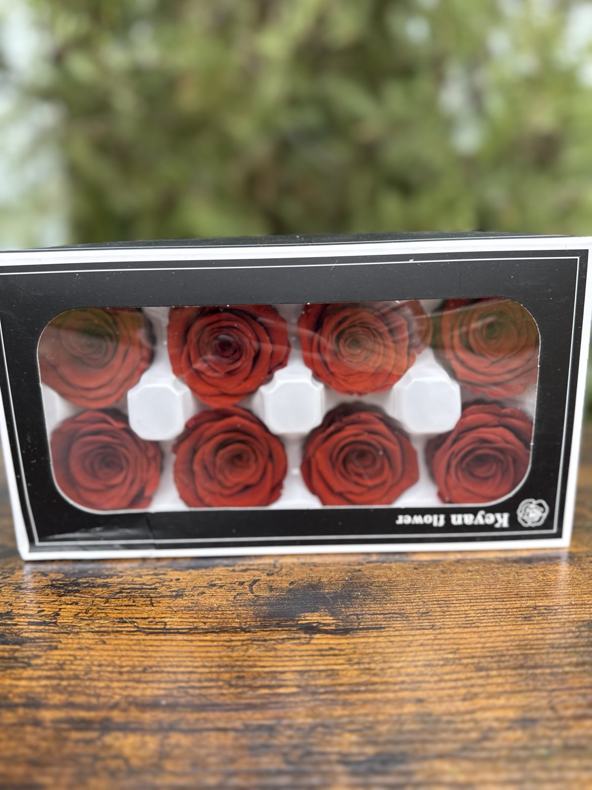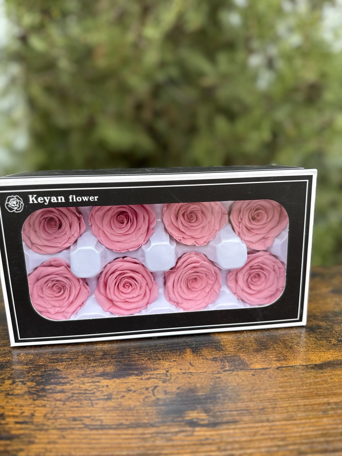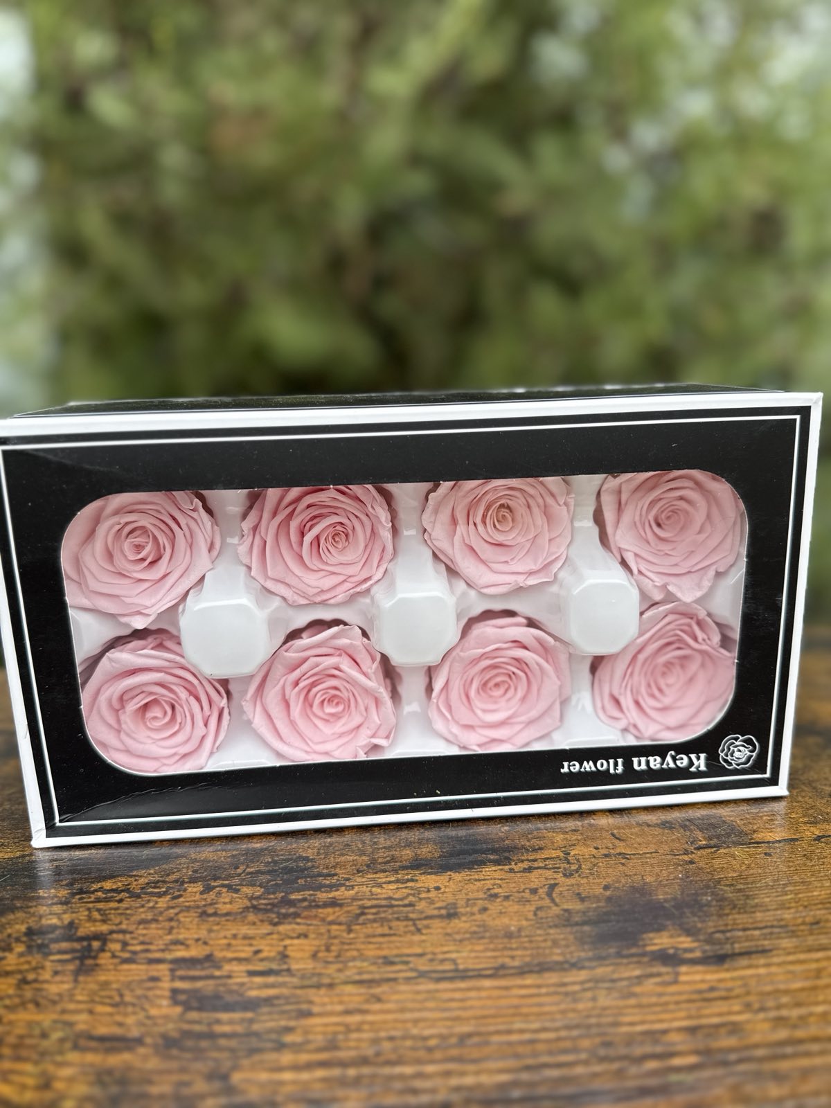 Дълготрайни рози главички, наречени „вечни“ - иновация за балсамиране на естествени цветя, за да се запази за по-дълго време тяхната красота и свежест. Естествените сокове се извличат и се заменят с по-чисти съставки, които дават „втори“ по-дълъг живот на розата. Нямат характерен аромат. Подходящи за аранжиране на букети, стъкленици и др. декорации. Цената е за кутия.