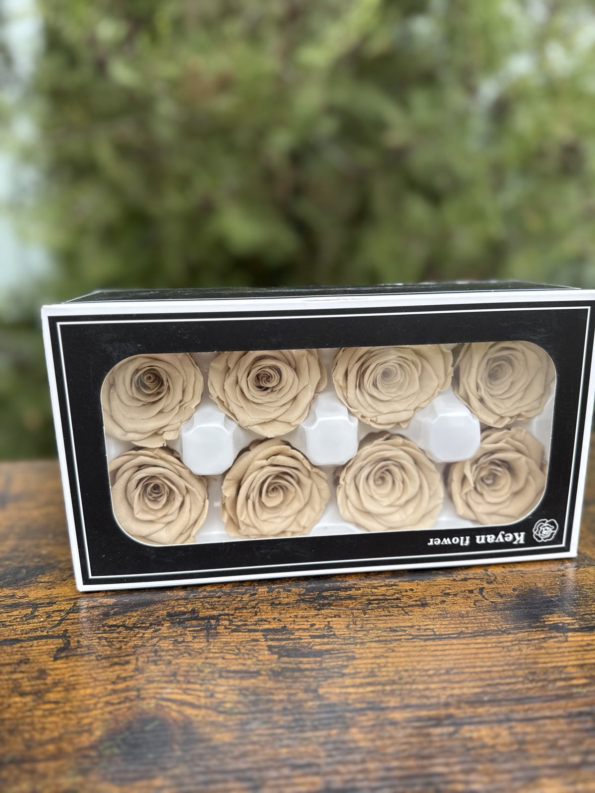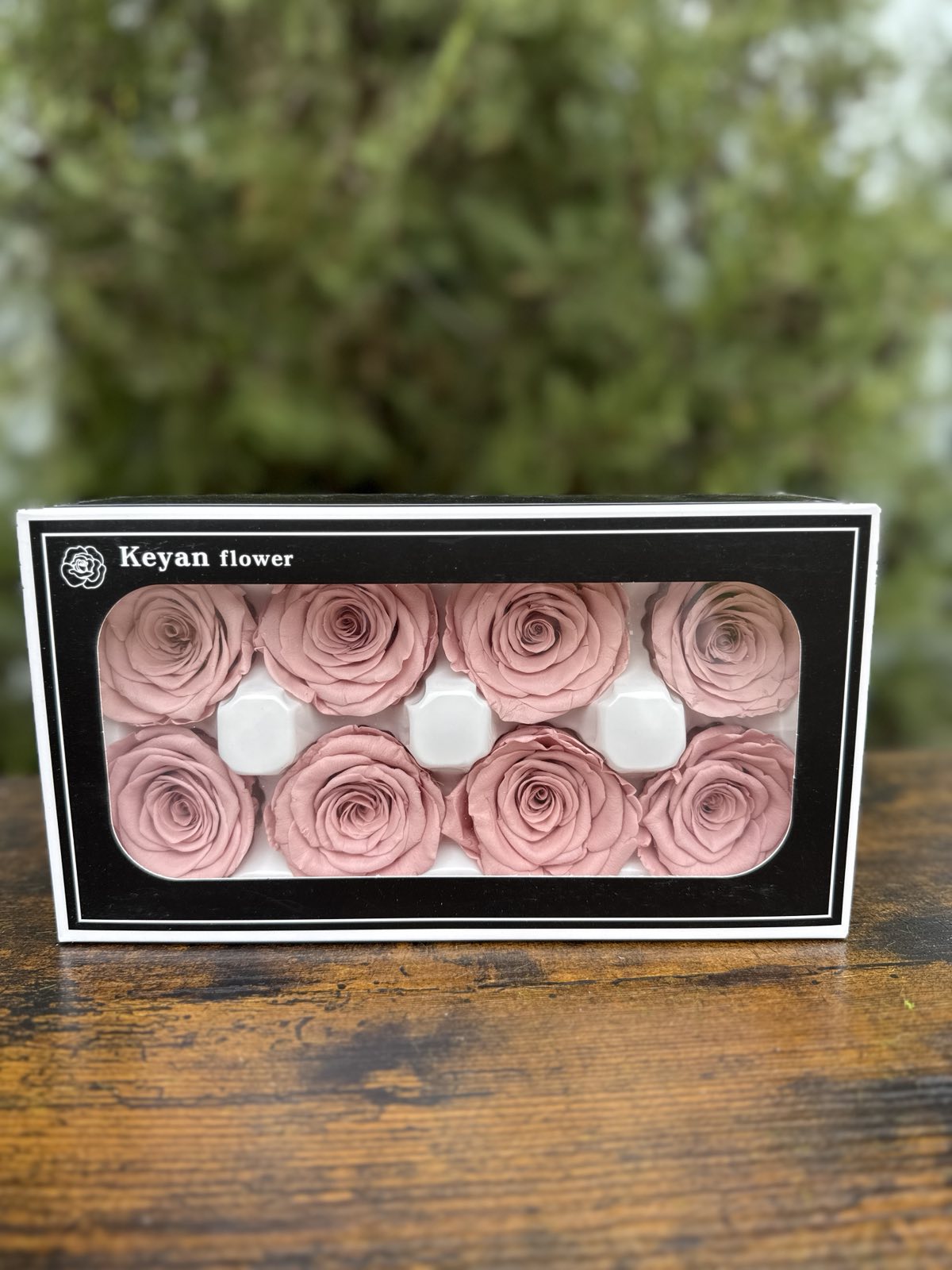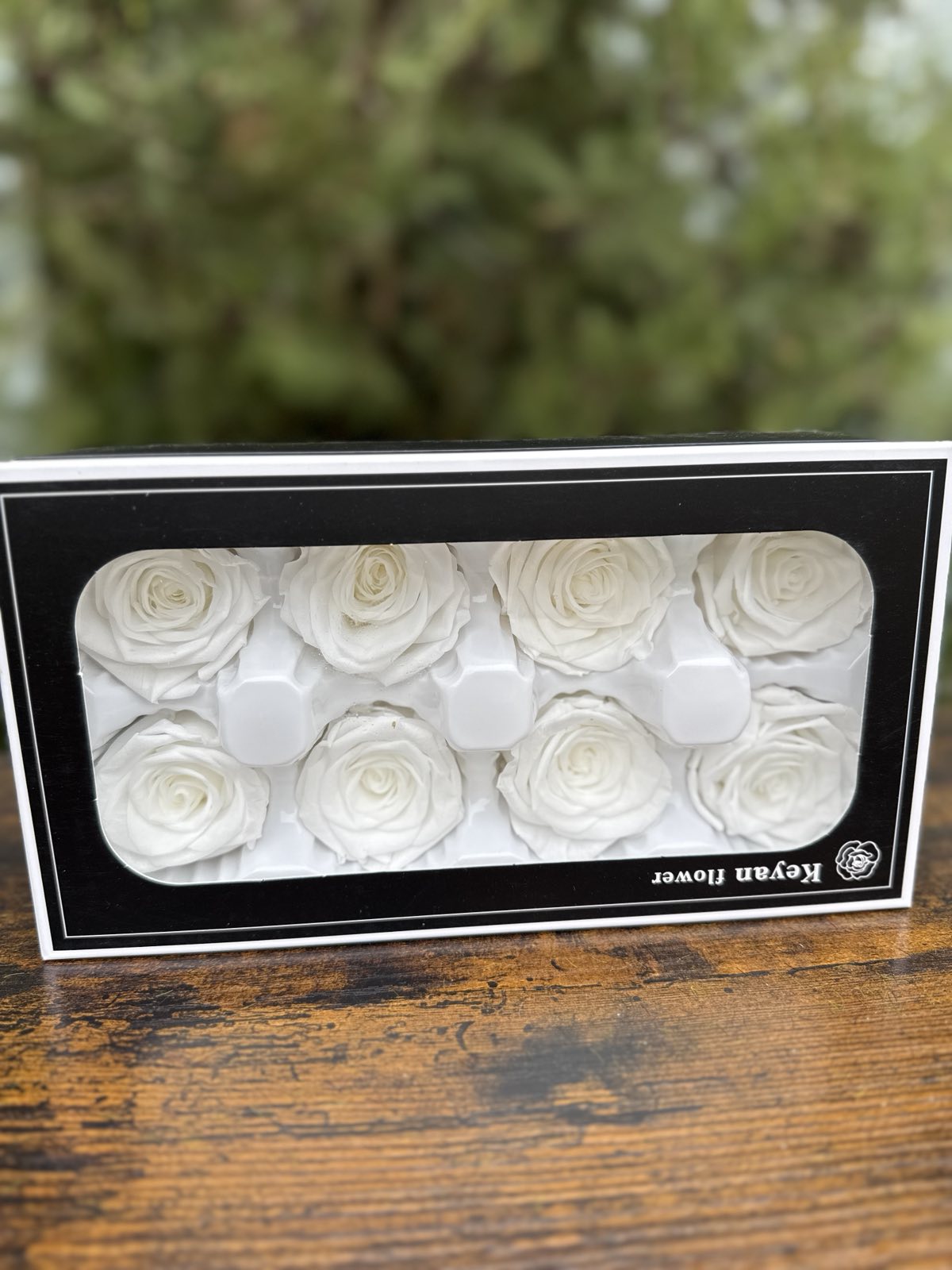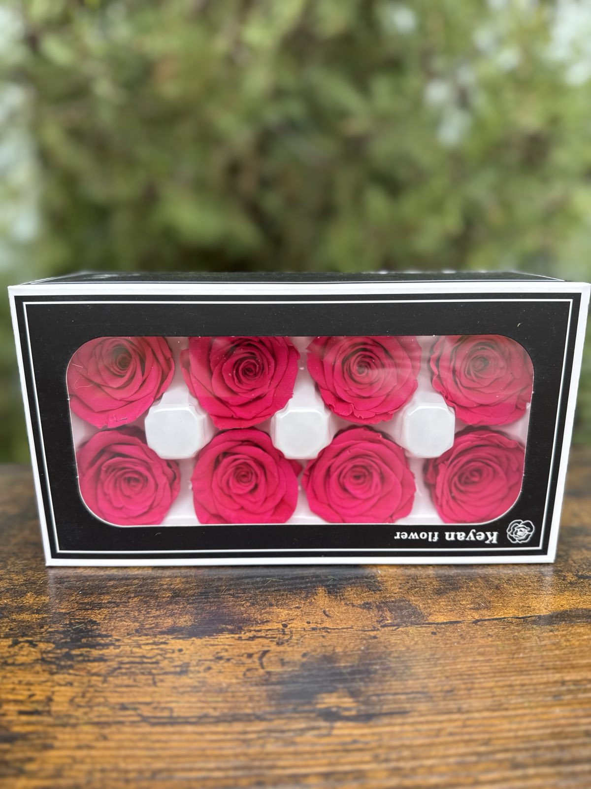 Дълготрайни рози главички, наречени „вечни“ - иновация за балсамиране на естествени цветя, за да се запази за по-дълго време тяхната красота и свежест. Естествените сокове се извличат и се заменят с по-чисти съставки, които дават „втори“ по-дълъг живот на розата. Нямат характерен аромат. Подходящи за аранжиране на букети, стъкленици и др. декорации. Цената е за кутия.
